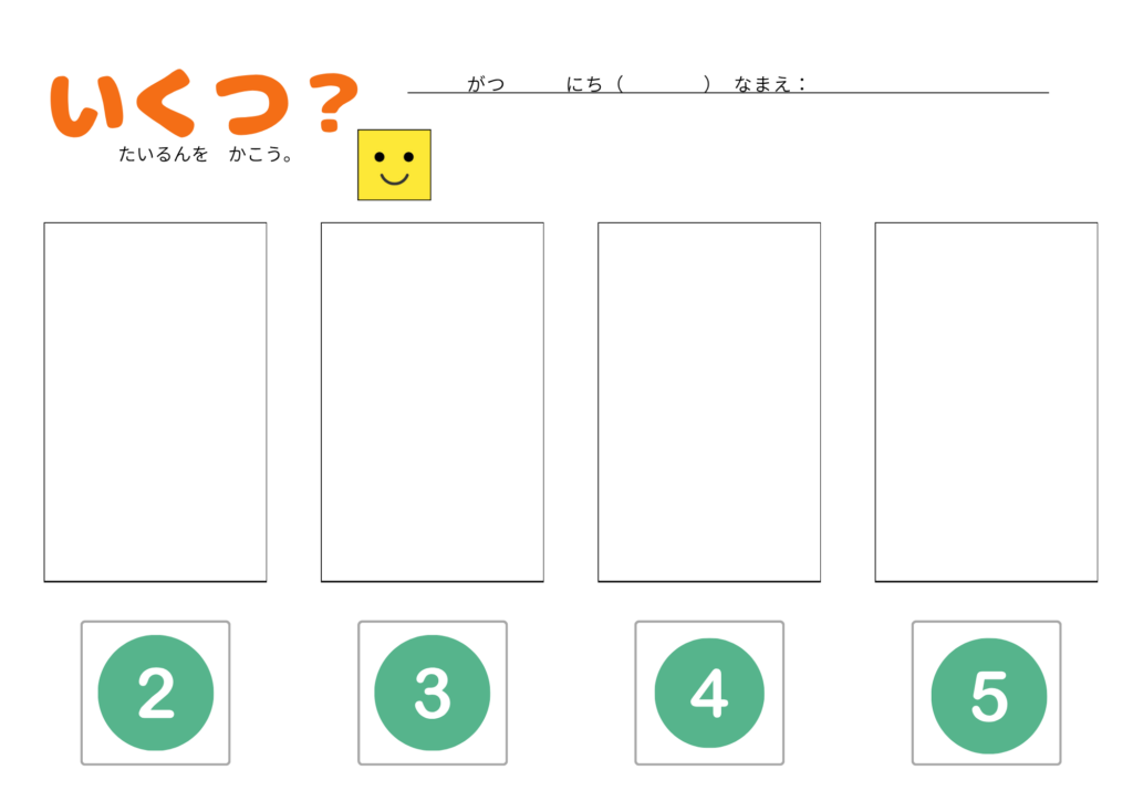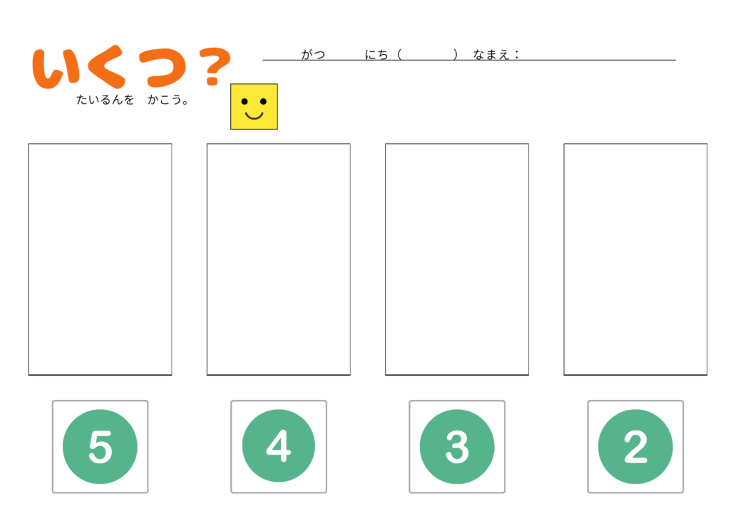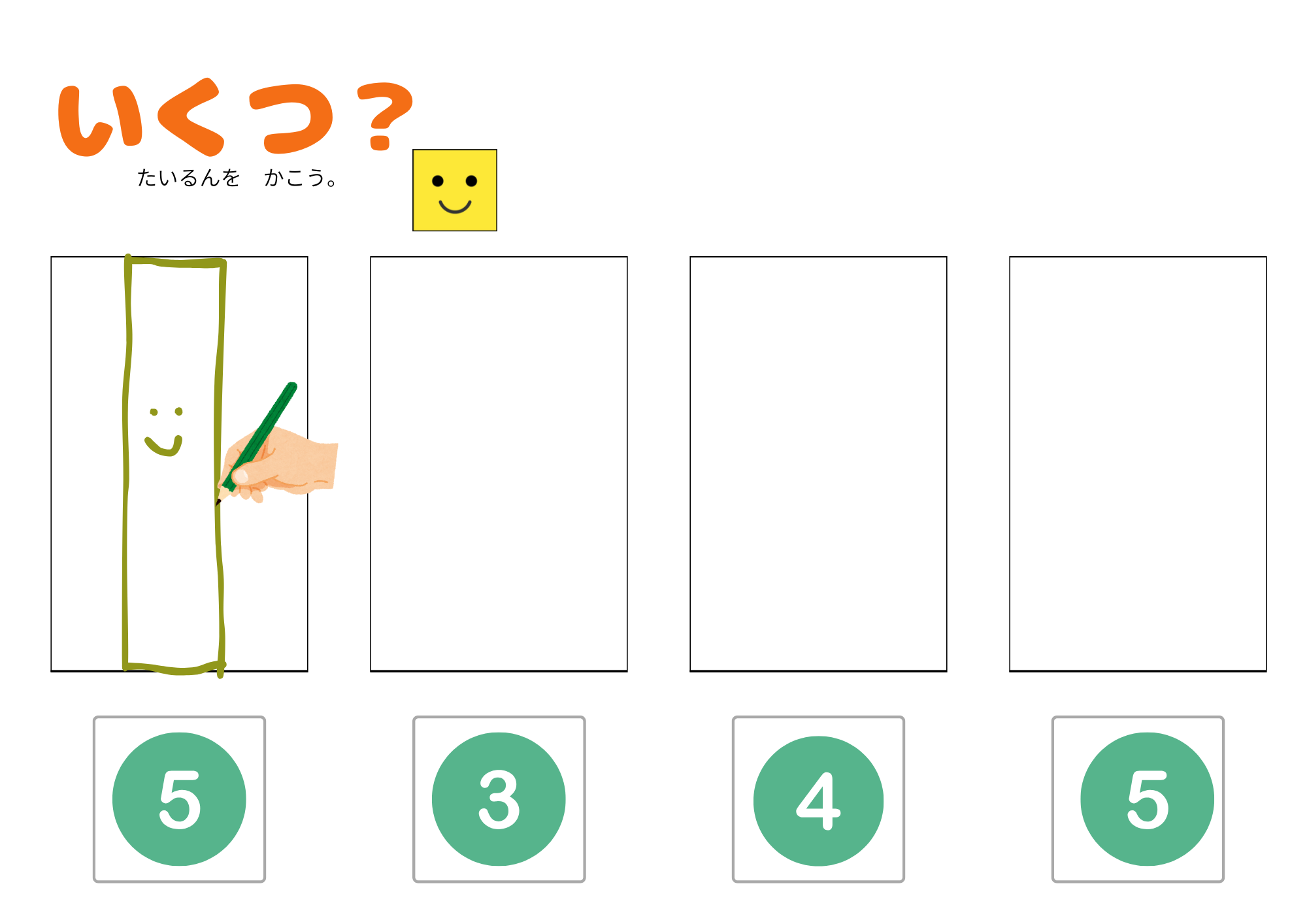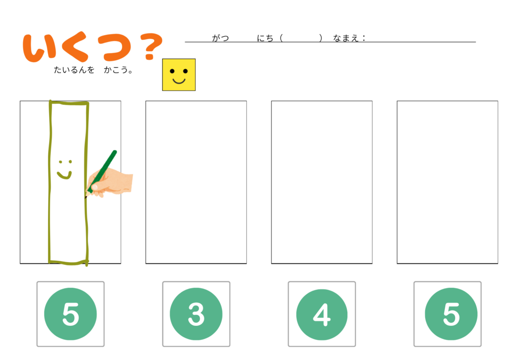 「5のまとまり」をテーマに、1〜5までの数の理解を深める学習プリントです。